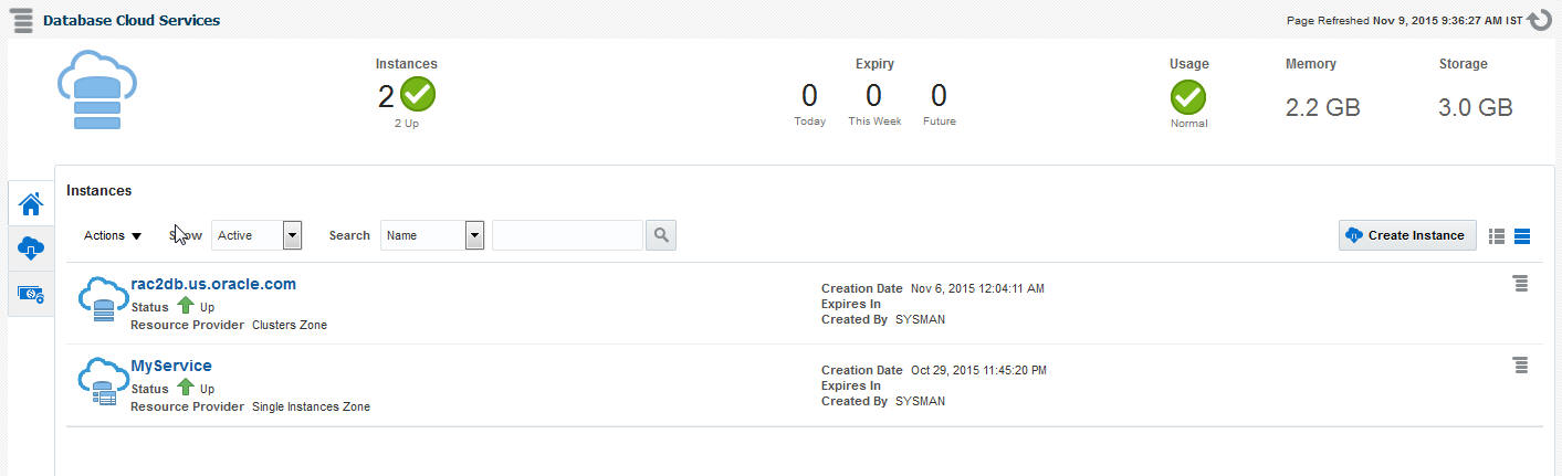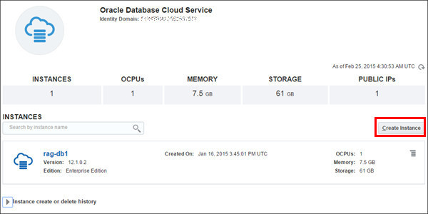 Figure 1 - Provisioned 12.1 Single Instance Database - Database as a Service in the Public Cloud